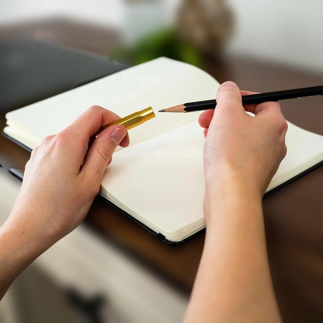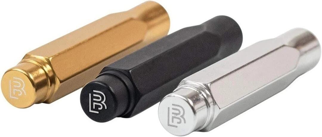 ブラックウィング・ポイントガードは、ブラックウィングの鉛筆をどこへでも安全に持ち運べるよう設計されています。軽量なアルミ削り出し製ポイントガードは、ブラックウィング鉛筆の先端をしっかりと保護し、バッグ、ポケット、 鉛筆ロールの中で安全に持ち運べます。鉛筆の先端はキャップの中で「浮く」ため、落下や芯詰まりから鉛筆を守ります。